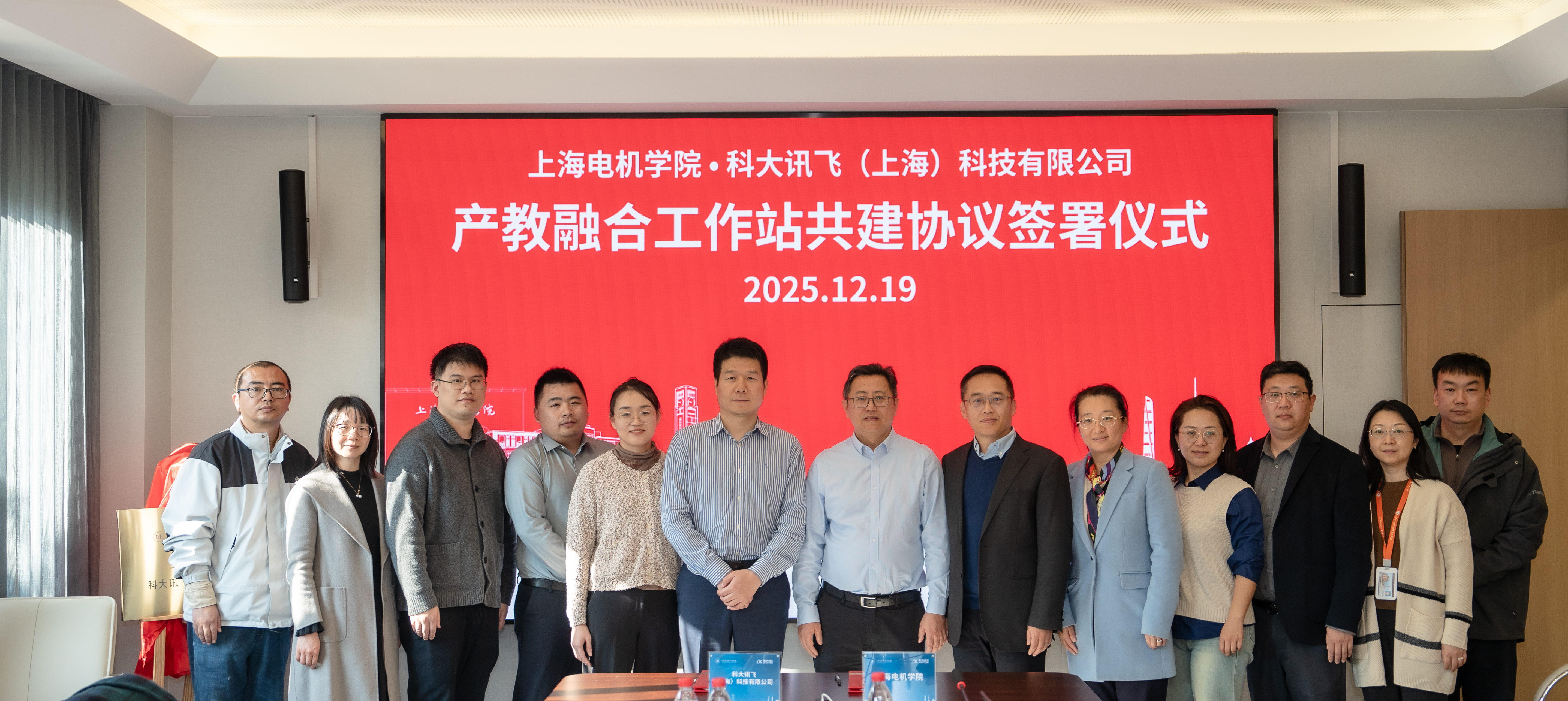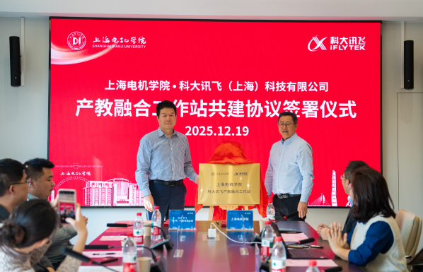 2025年12月19日下午,上海电机学院与科大讯飞(上海)科技有限公司产教融合工作站共建协议签署仪式在国际楼举行。出席本次签约仪式的有王宏志副院长,研究生处、科技处、产教融合处、国际合作与交流处、国际教育学院的领导和师生代表,以及科大讯飞(上海)科技有限公司副总经理、教育行业总监、高级产品经理和高级市场经理等人。国际教育学院院长鹿钦佞主持了签约仪式,王宏志副院长、王端武副总经理致辞,双方共同为工作站揭牌,开启校企深度合作新篇章。